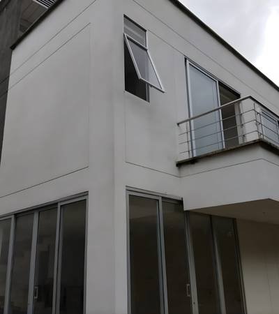 Vivienda unifamiliar de dos niveles y terraza, las zonas sociales en el primer piso se conectan directamente con las terrazas del jardín, en la segunda planta se ubican las 3 habitaciones cada una con vestier y baño, y la terraza se usa como mirador de la ciudad y los farallones