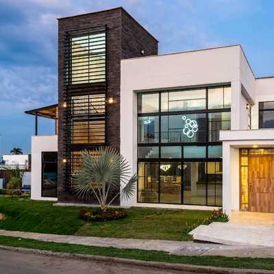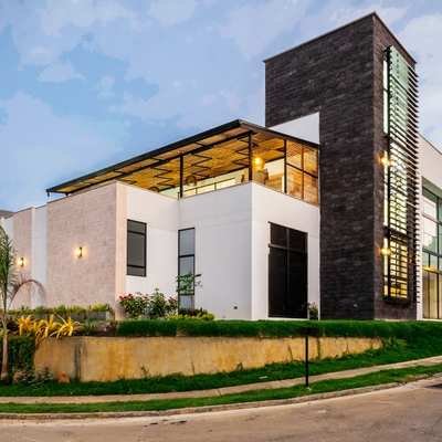 Vivienda unifamiliar de dos pisos con espacios amplios iluminados y ventilados naturalmente, emplazada en una esquina de diferente nivel que la vuelve imponente en el condominio, la naturaleza está vinculada en todo momento en piedras de diferentes tonos en interior y exterior y en los jardines que la rodean, la cocina americana abierta y terrazas sociales como miradores a la ciudad y los Farallones.